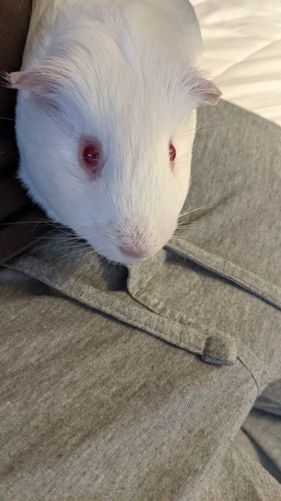 Our first pet was a white beta. That was swimming powder. Our second pet was a white guinea pig. This is running powder. He’s my friend. 😁