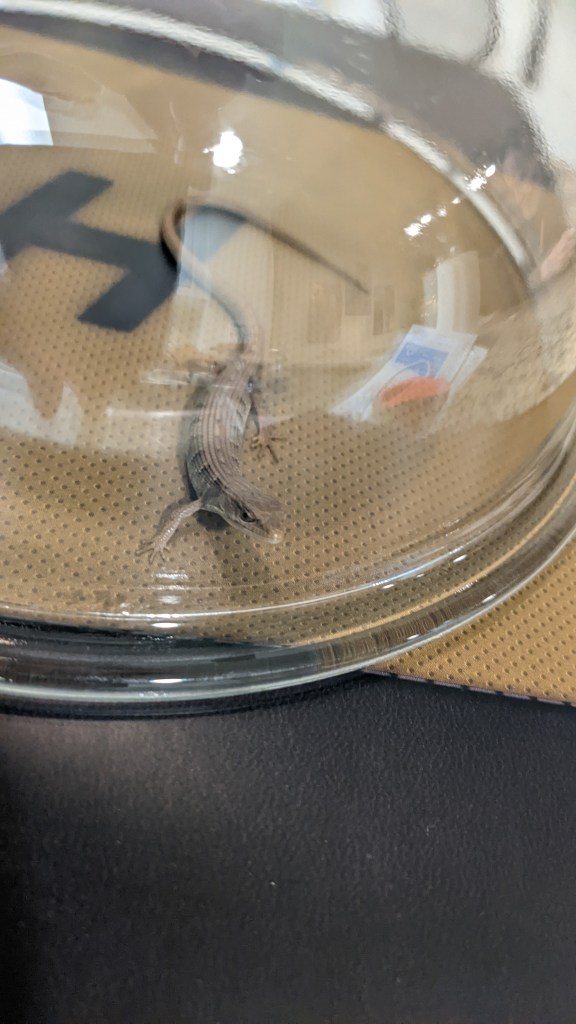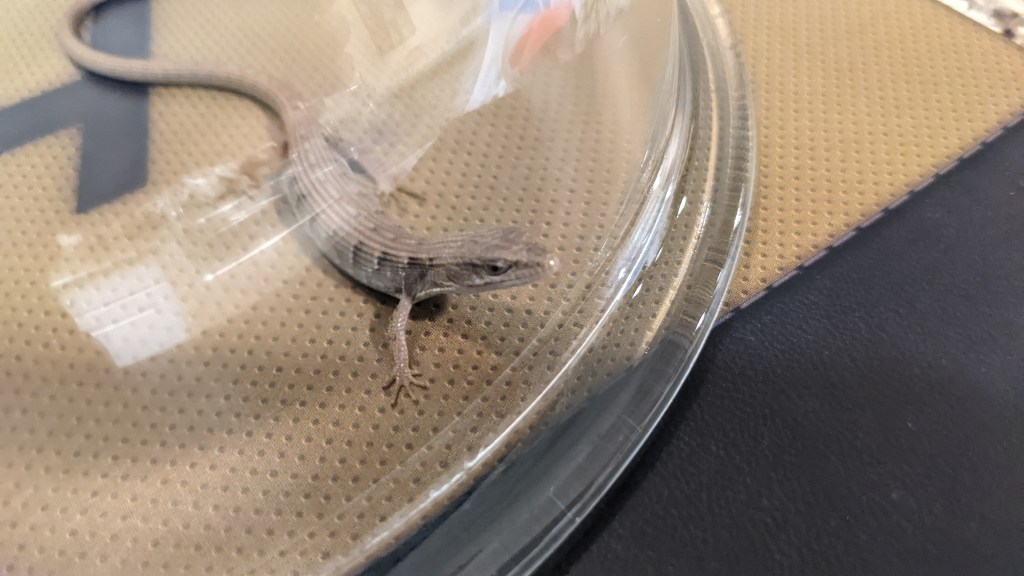 I caught a lizard in the house and trapped it under a bowl. I then released it outside (after getting some beauty shots.)