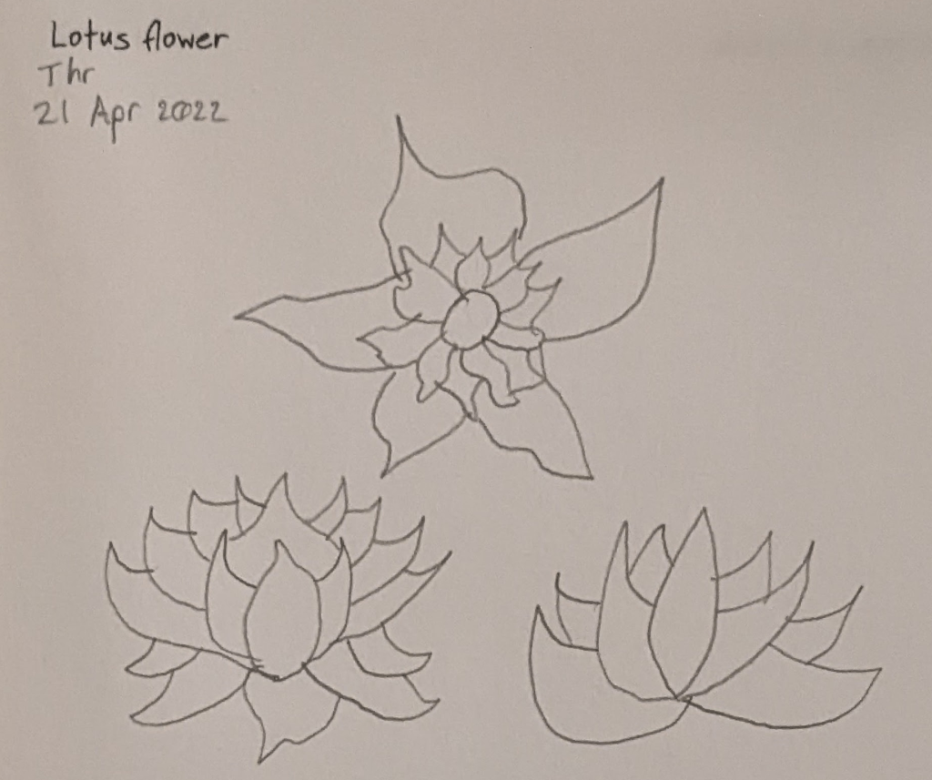 It’s a lotus flower. I know I’m a little surreal in my drawings, but if none of those are recognizable as a lotus flower I should probably quit… but I’m not getting paid for this and I don’t know to whom I would give my resignation, so y’all are stuck with me for now. My apologies.