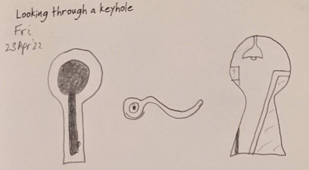 The drawing on the right is from the perspective of the individual looking through the keyhole.