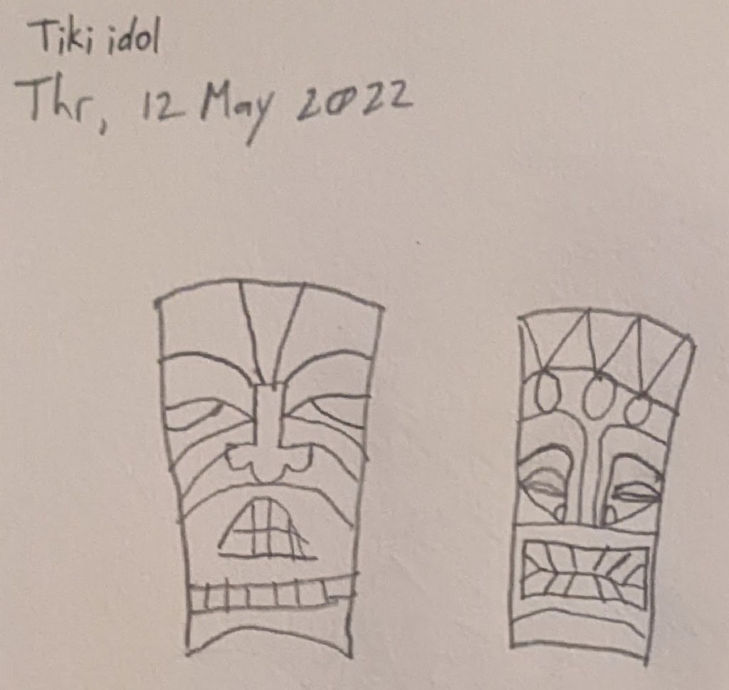 My attempt to draw a Tiki idol… or two. Yes, definitely an attempt to draw two.