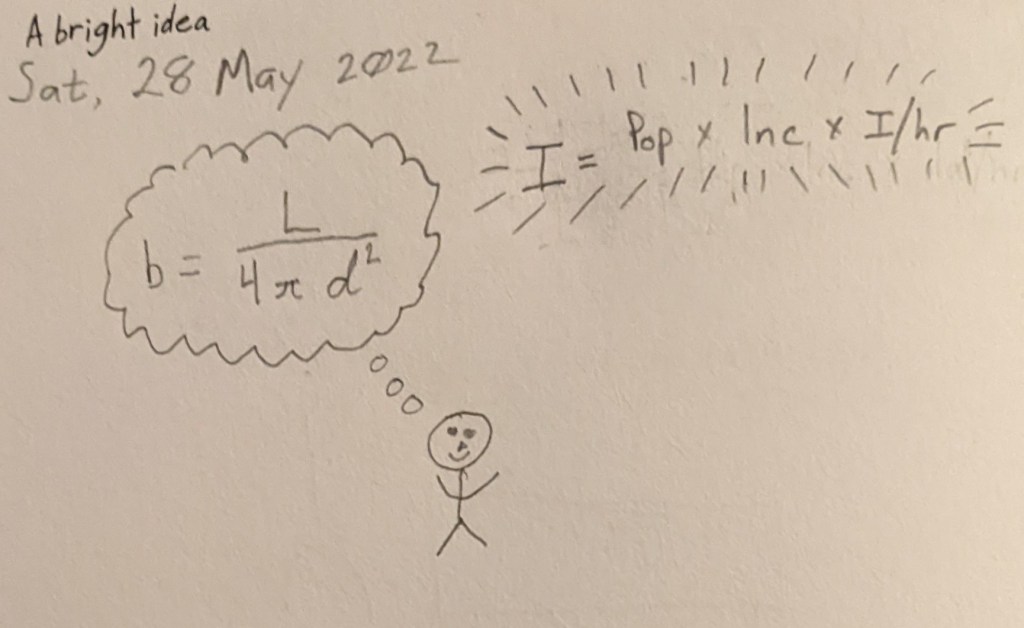 The left drawing is a person thinking of the equation for brightness.