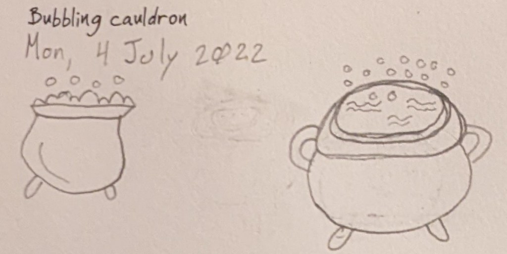 Two attempts at drawing a bubbling cauldron. I get points for effort, right?!?