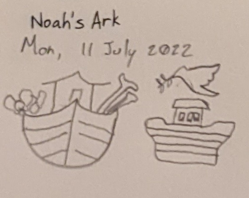 Big boat with animals. Big boat with dove above it. (Hey! That rhymed! I’m a poet and didn’t know it!)