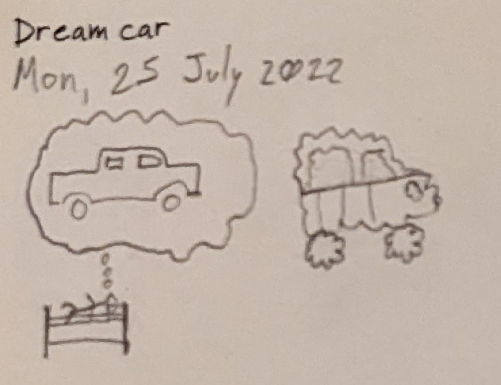 Two sketches… one of a car being dreamed and the other of a car made out of dreams.