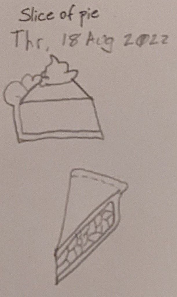 Two slices of pie. One is a solid pie (like lemon meringue) with whipped cream and the second is a berry pie (like blueberry.)