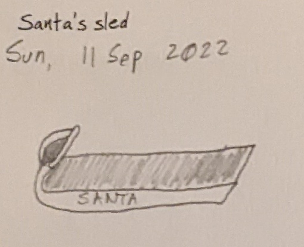 Uh… doesn’t Santa pilot a sleigh?? I drew Santa’s Summer vehicle… a sled.
